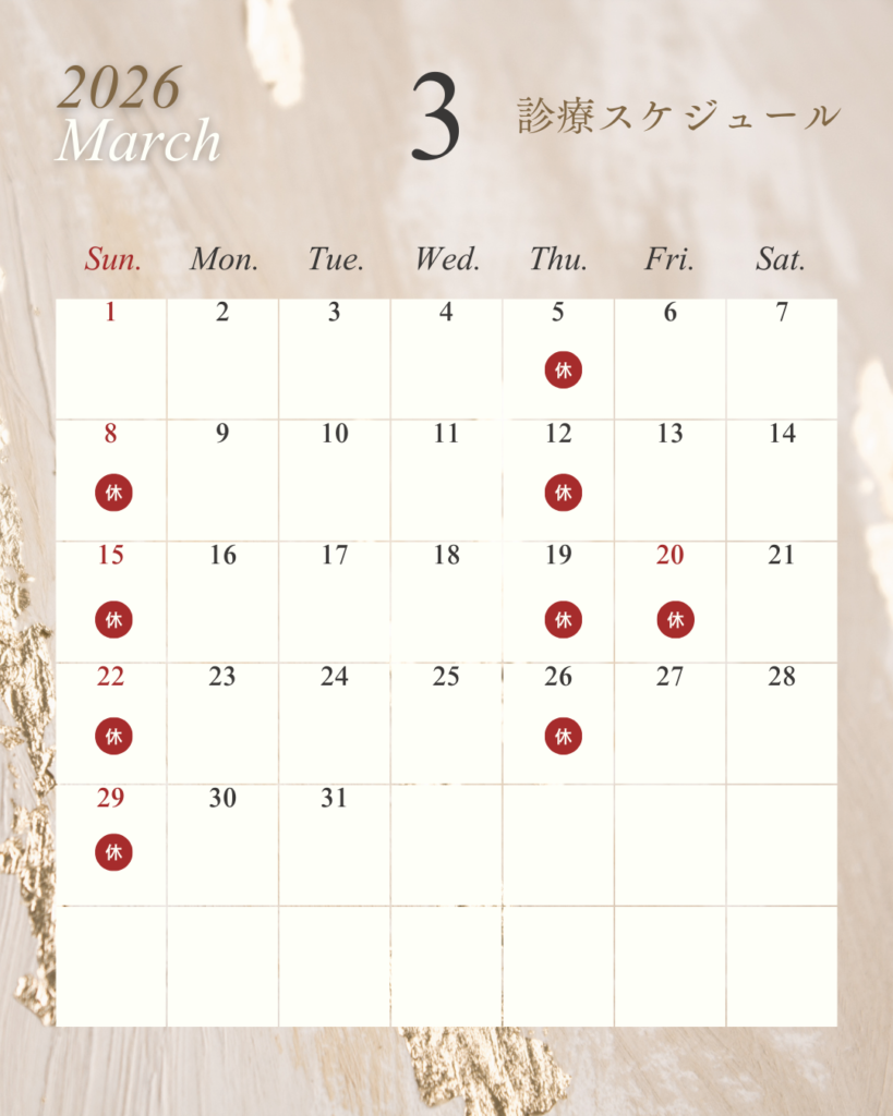 3月の休診日のご案内。